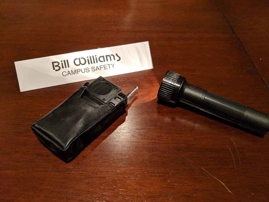 • Bill Williams, Campus Safety – One of those guys who went off to college and never left.  He just loves academia and took a job as a campus safety officer so he could spend all his time on campus. Like all campus safety, he has all the appearance of authority with no actual power.  Inspiration: every campus safety officer I ever met.